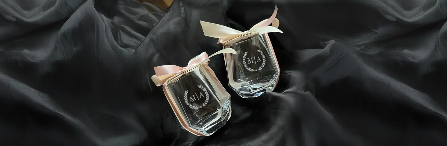 Simple yet sophisticated, engraving initials or a monogram on a hand-blown glass piece creates a personal connection. Perfect for couples, families, or corporate gifts.